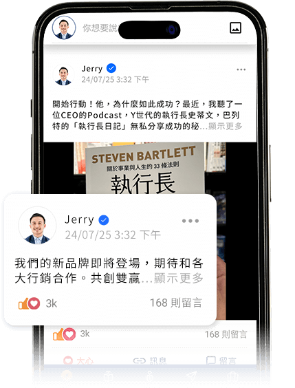 您可24小時發布動態訊息,隨時隨地分享最新動態、專業服務,吸引更多人對您感興趣,快速連結。